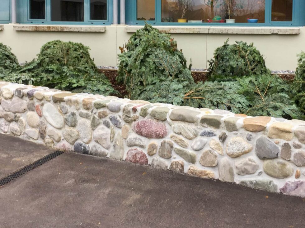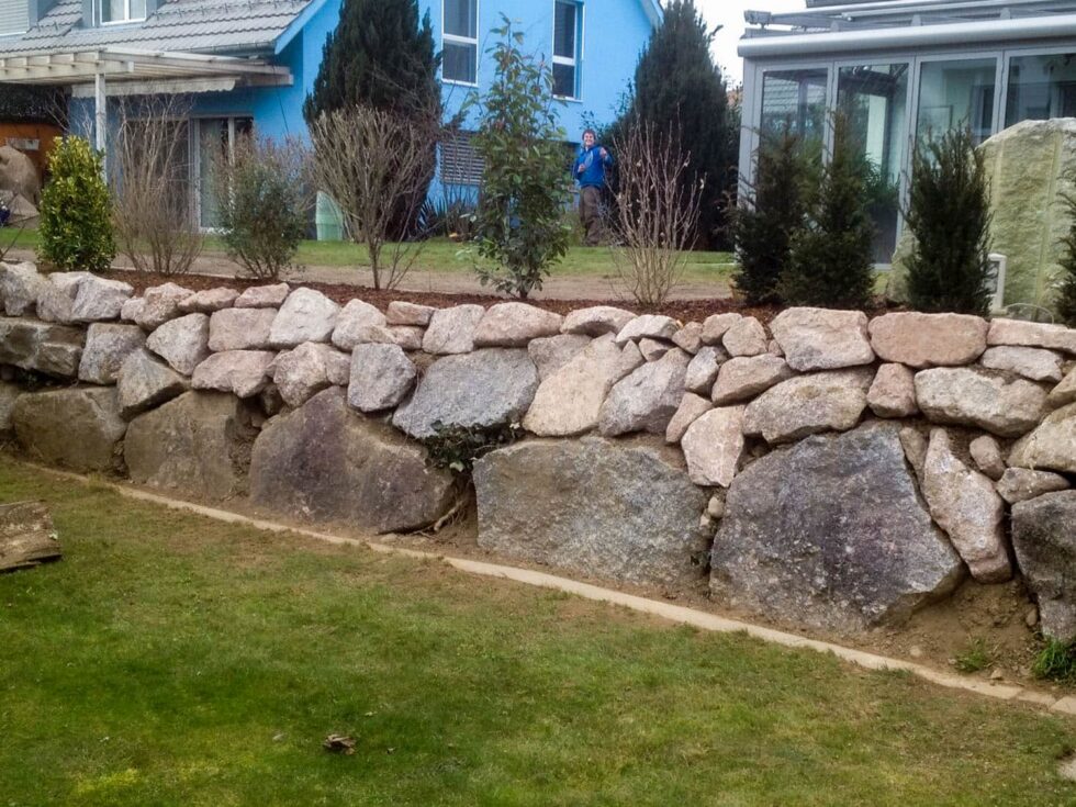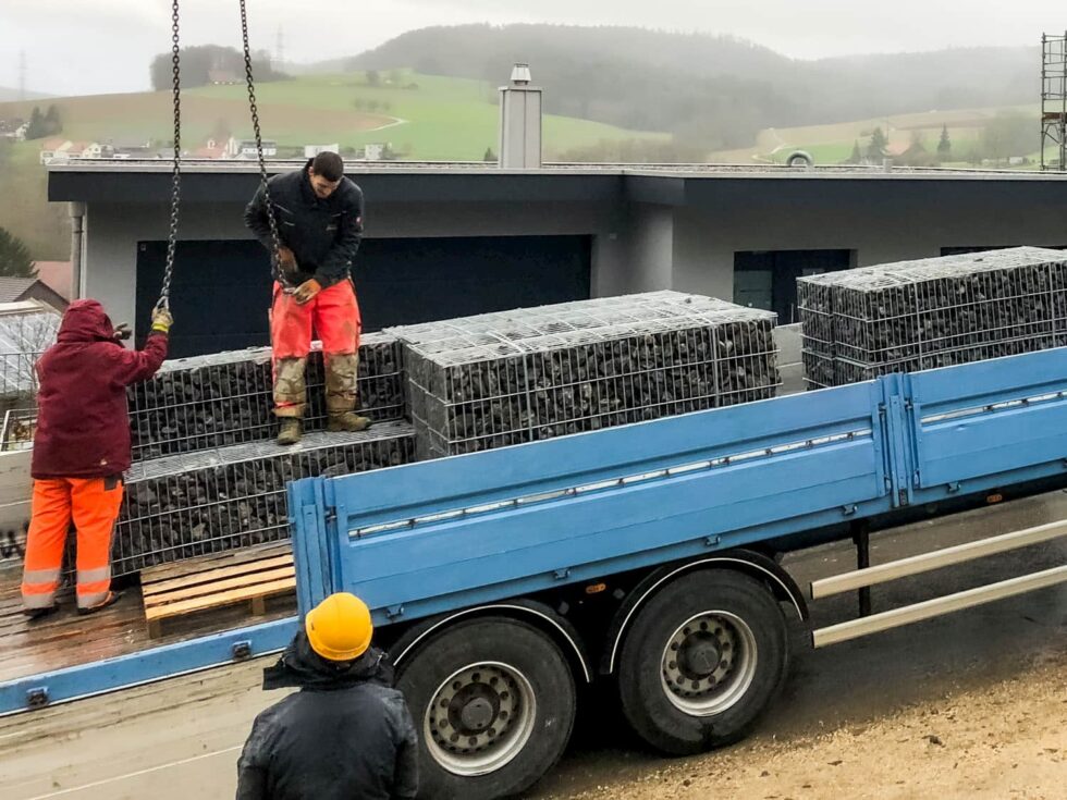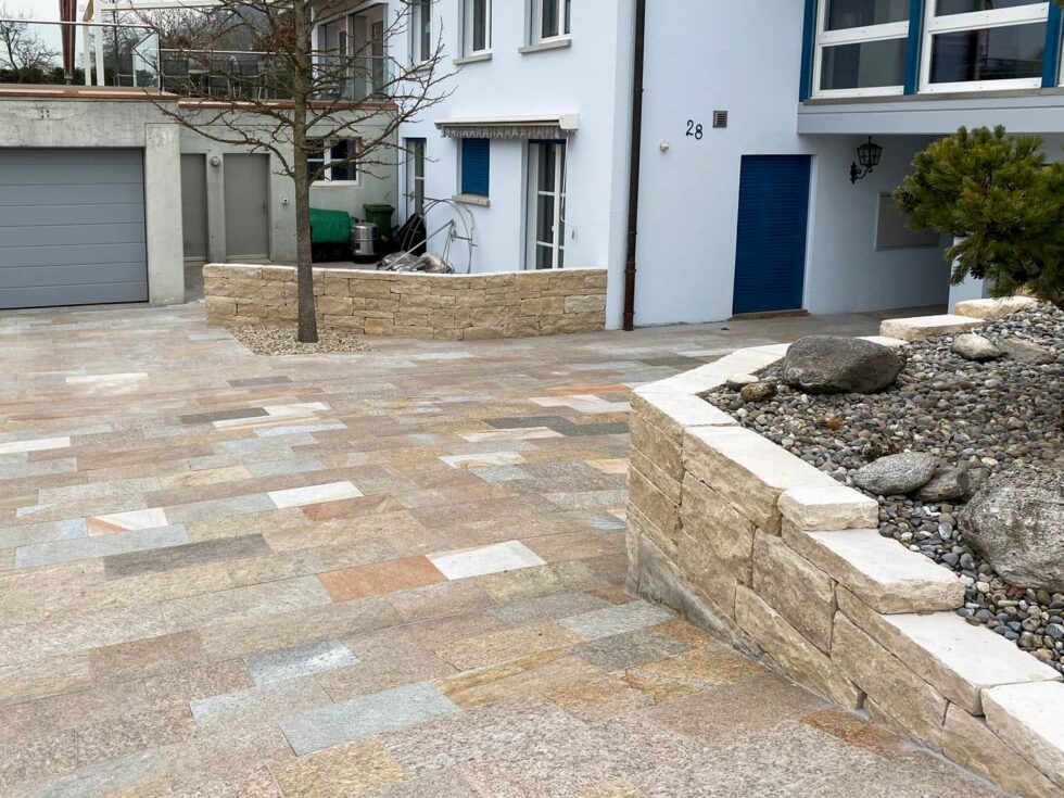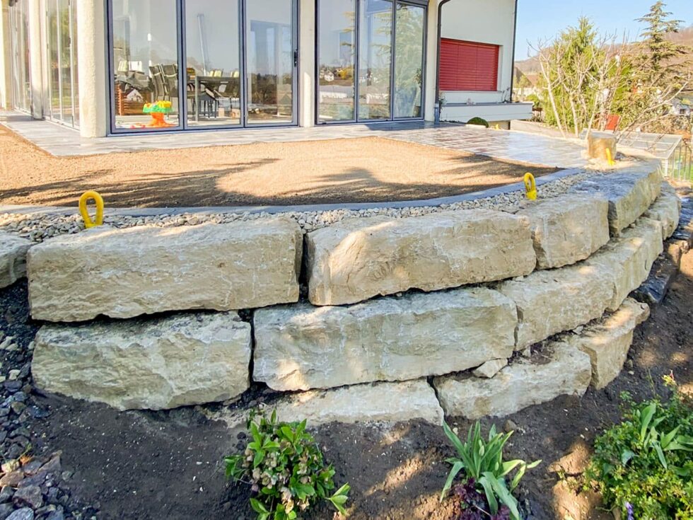 Für Natursteinmauern und Plattenbeläge beziehen wir Natursteine vom Steinbruch Mellikon, Lägern Kallksteinbrüche AG, von Fontarocca und von Dezanet.